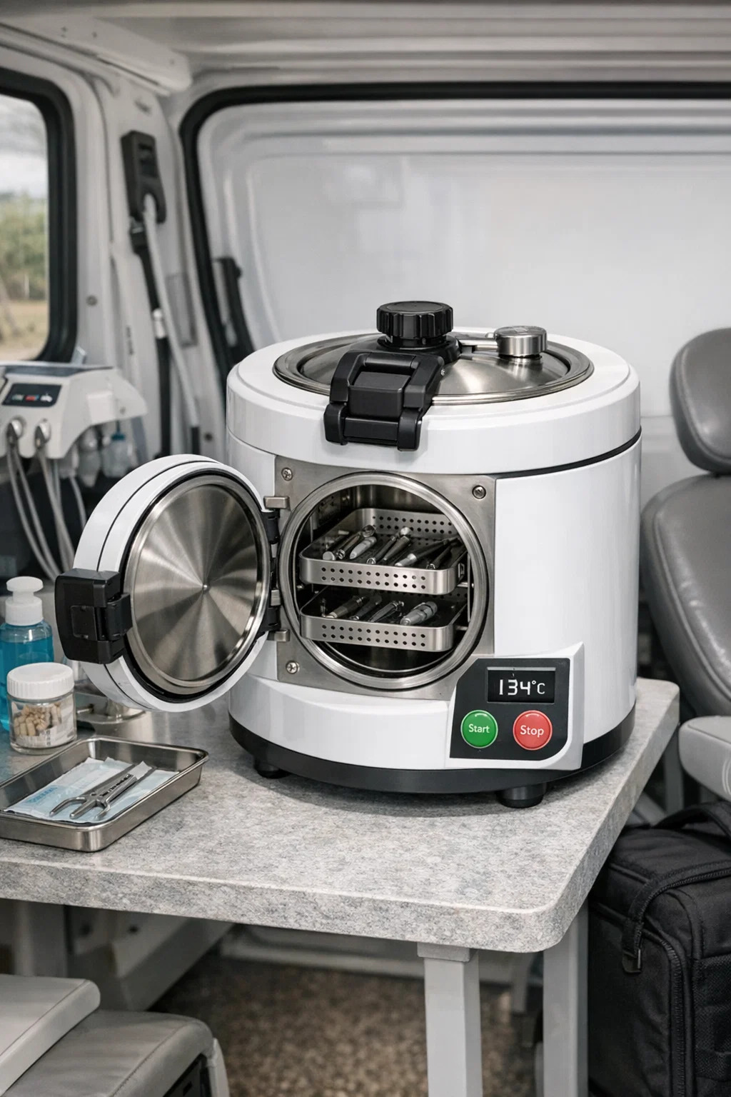 One-Button Committitur: Autoclavae dentales maxime portabiles menus complexum eliminant, plerumque tantum paucas globulis nuclei featuras.